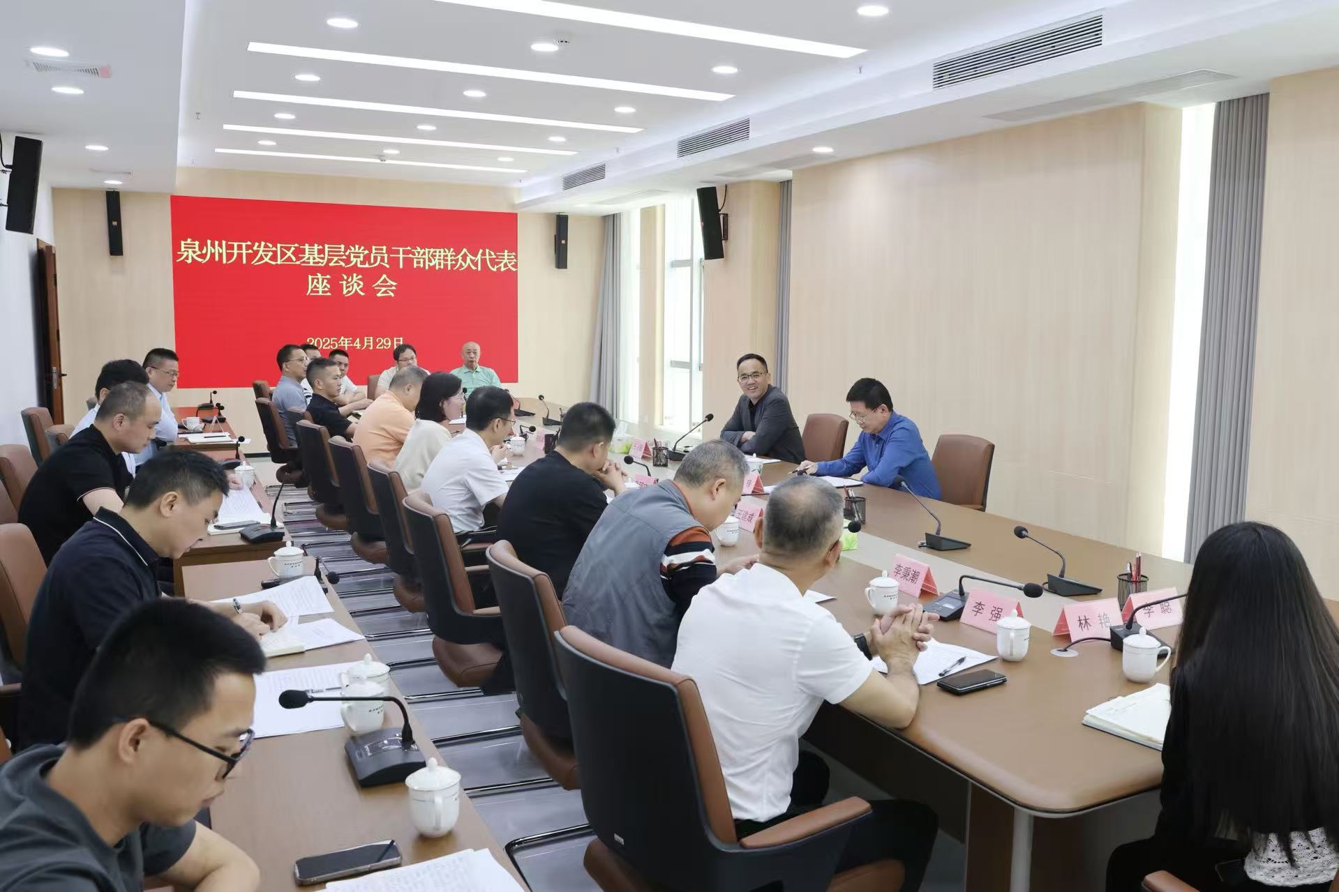 为扎实开展深入贯彻中央八项规定精神学习教育,坚持开门教育、全面查摆问题、进行集中整治,4月29日,泉州开发区党工委书记王小阳、管委会主任陈拥军分别主持召开座谈会,征求基层党员干部群众对区党工委、管委会领导班子的意见建议。