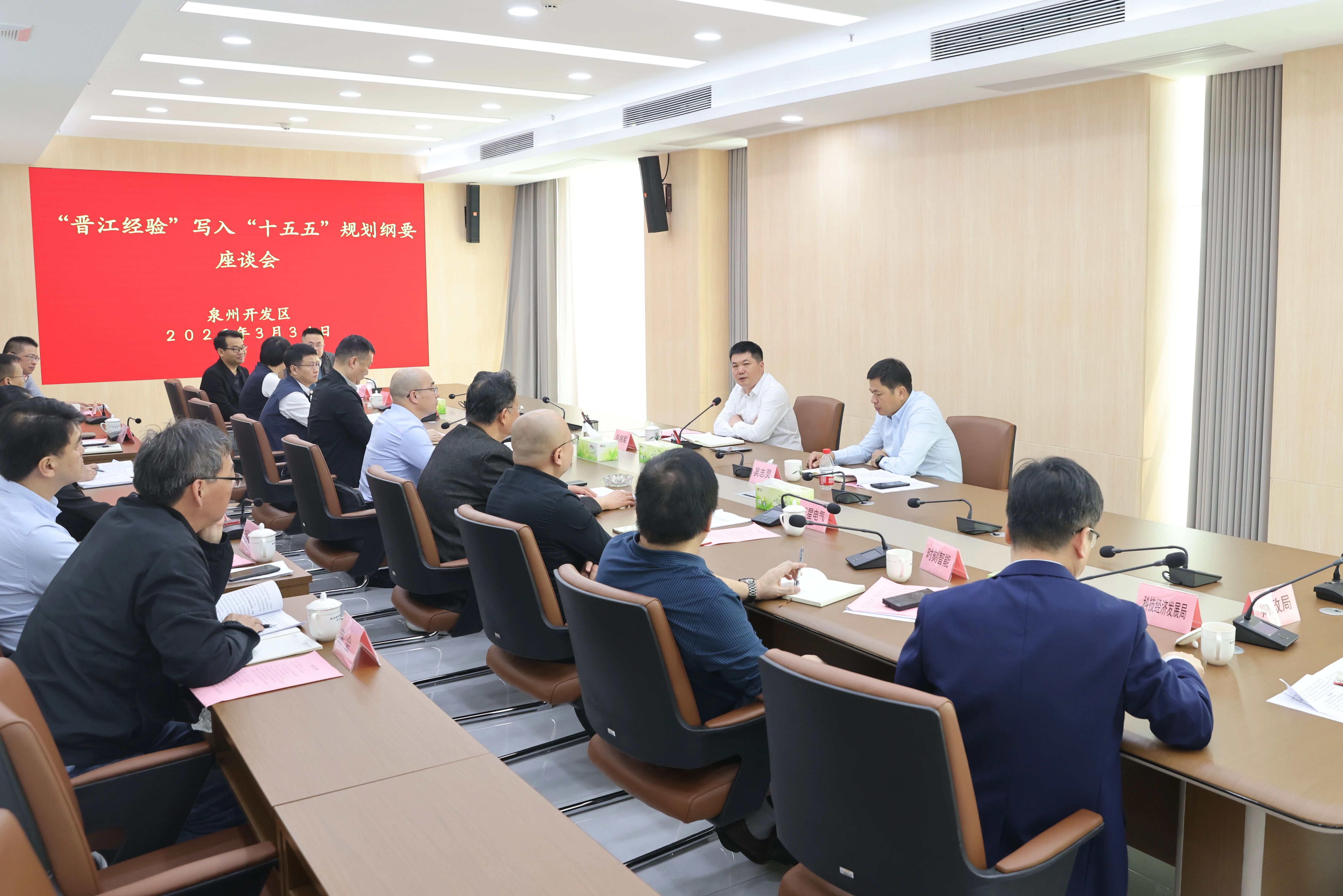 会上,福州大学、湖南大学研究院、华中科大研究院相关负责人、区内企业家代表,区科经局、资规局、财政局等部门负责人结合自身工作和实践,围绕“晋江经验”写入国家“十五五”规划纲要作交流发言。区领导吴志灵,区直相关部门、区商会、企业家联合会等相关负责人参会。